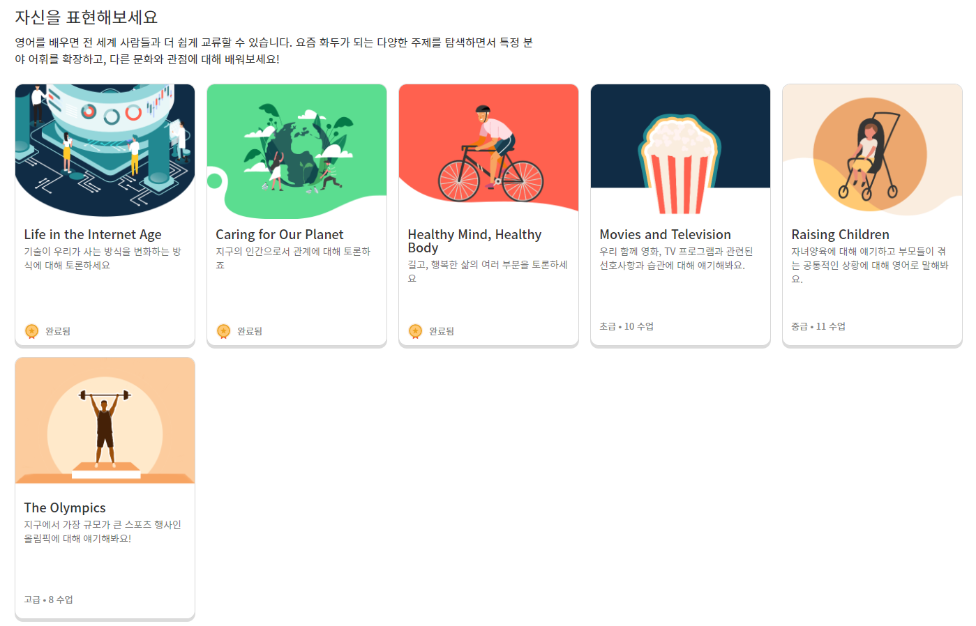 캠블리를 수강하고 나서 말하기에 유창성이 늘었다고 생각합니다. 물론 오픽 시험 공부를 병행했지만 영어 말하기에 꾸준하게 노출되는 것이 도움이 되었습니다.